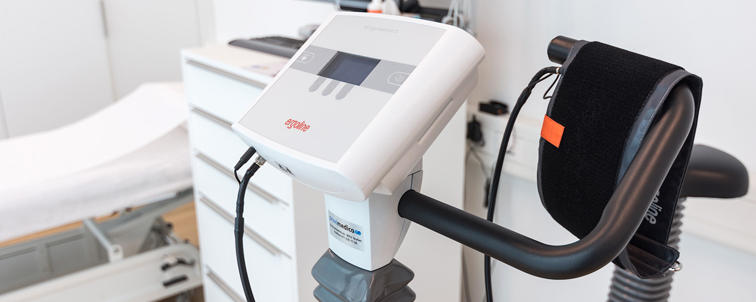 Für eine individuelle Trainingsberatung kann das Belastung-EKG mit einem Laktatstufentest auf dem Fahrradergometer kombiniert werden.